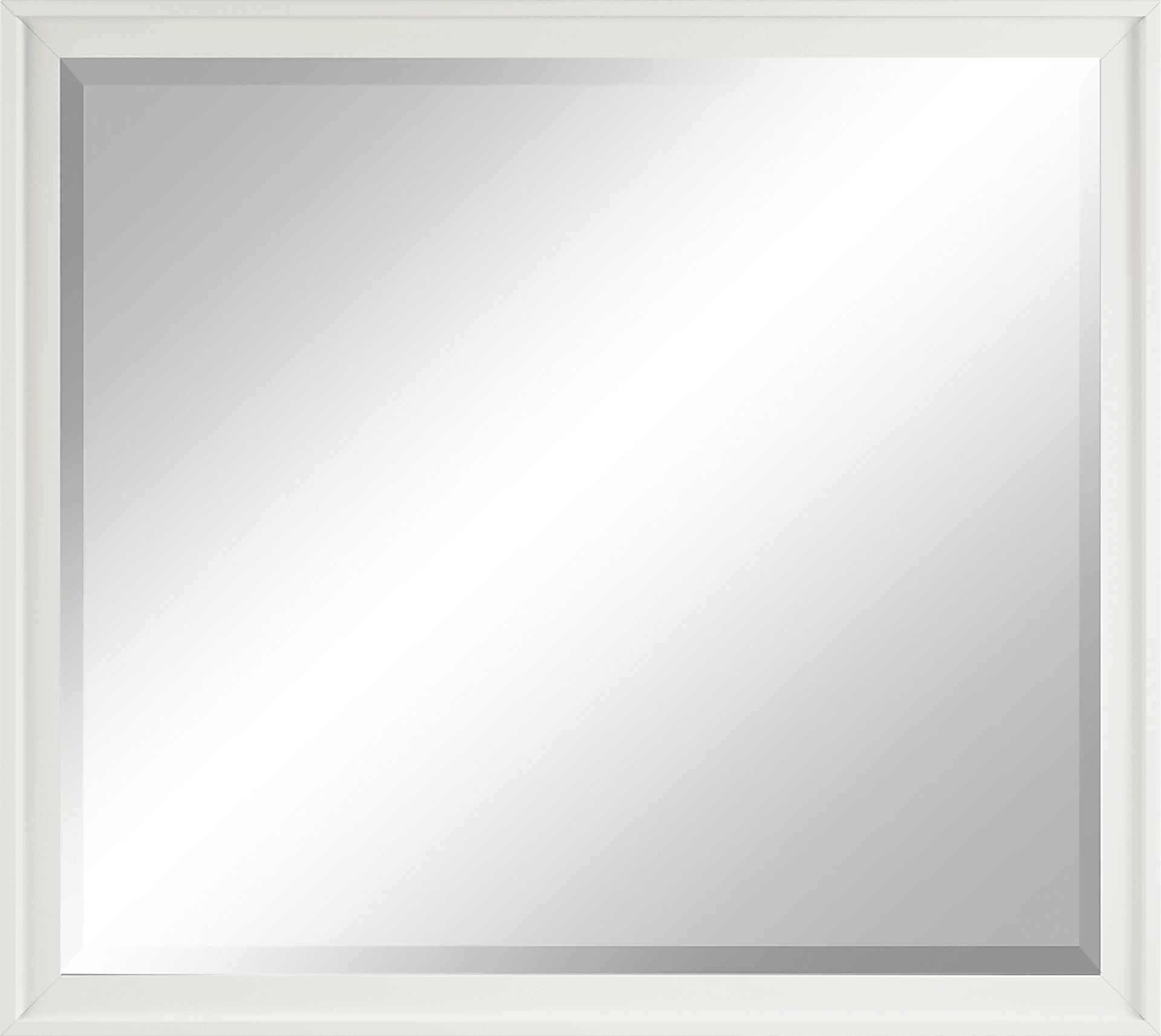 Proving that it really is hip to be square, features the Belcourt mirror features beveled glass in a square frame with a white finish. The contemporary style of this mirror makes it a perfect complement to its matching dresser.