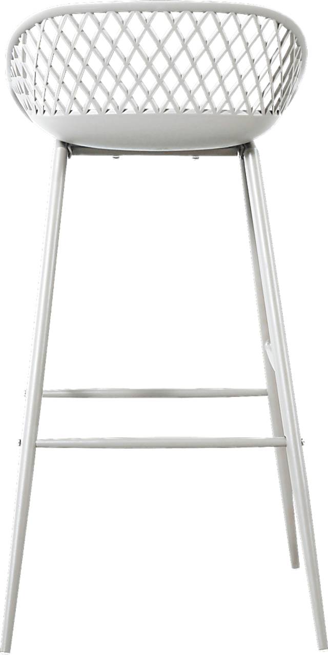 Grab a your favorite book and beverage to sit in the Belcross bar stool! Finished in white polyprogylenge with whicker backing and coated metal legs. Customer assembly is required.