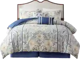 Elevate your bedroom with the refined allure of the Belenne 6 piece cotton comforter set. The 100% cotton slub comforter showcases a botanical print, in yellow and blue hues, with a solid blue reverse, for an elegant cottage look. The 2 matching shams pair beautifully with the oversized and overfilled comforter and the 2 decorative pillows, 1 oblong and 1 square, add complementary touches. A solid blue bed skirt provides a clean finish to round out the charming farmhouse appeal of this cotton comforter set. This bedding set is also OEKO-TEX certified, meaning it does not contain any harmful substances or chemicals, ensuring quality comfort and wellness. Customer assembly is required.