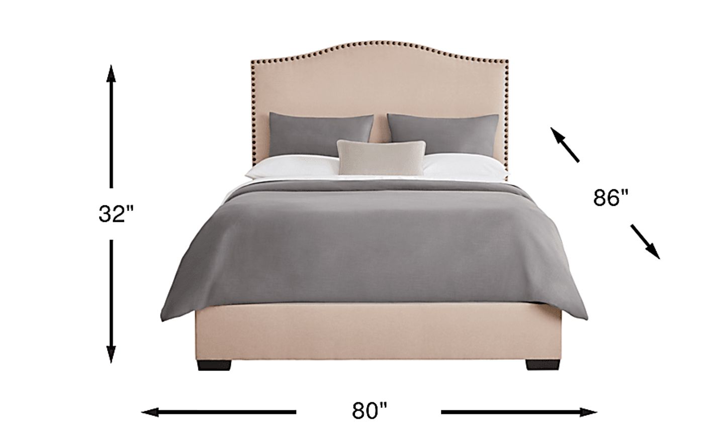 This sand-colored bed is an excellent choice for creating a bright, airy feel, particularly in coastal or warm climates. The linen-style fabric is naturally breathable, ensuring the surface stays comfortable throughout the seasons. While the color is light, the textured weave is adept at concealing minor dust, and the hand-applied nailhead trim adds a layer of structural reinforcement to the fabric edges for added durability in busy households.