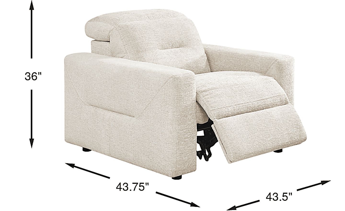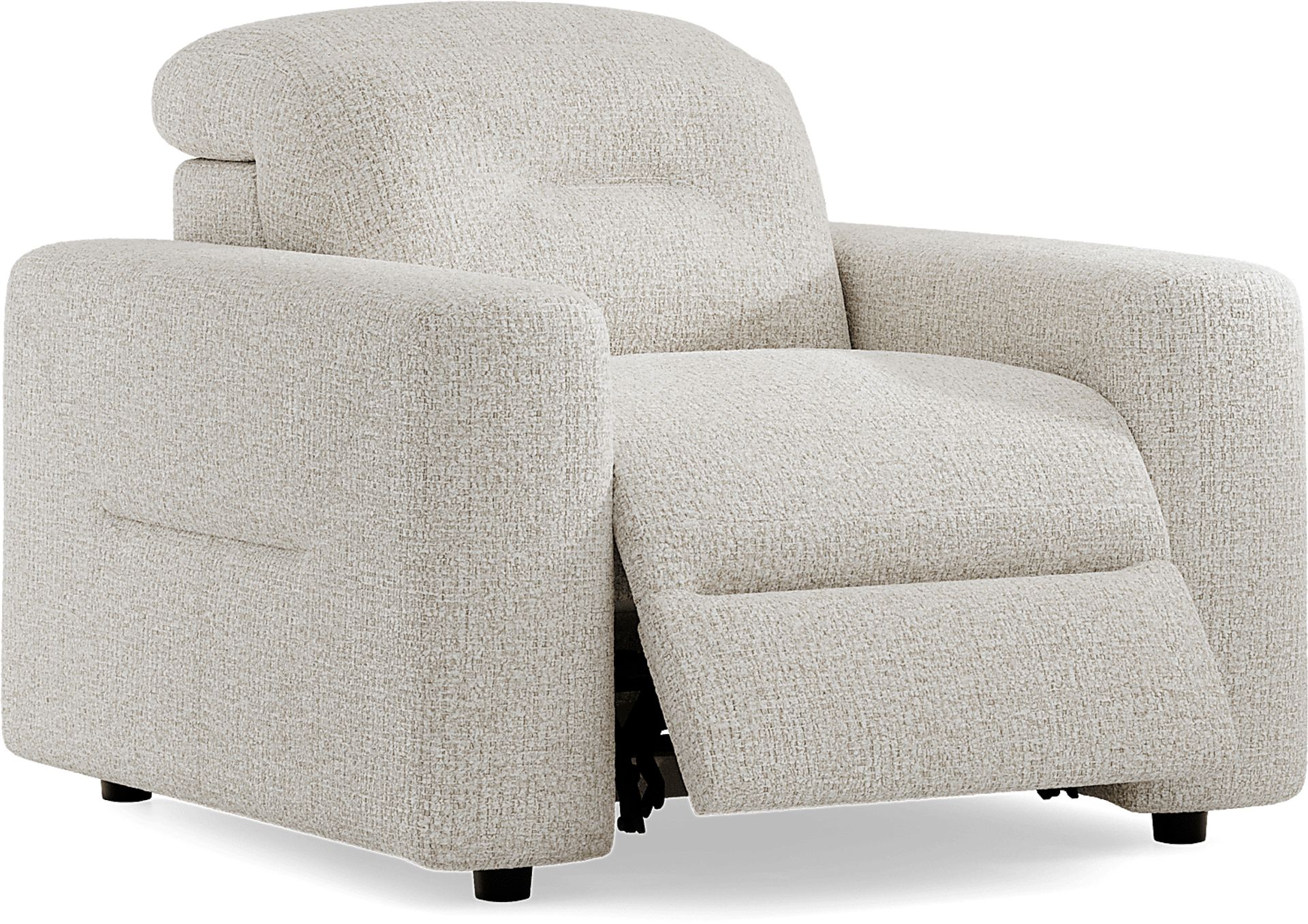 With a soothing, refined design and luxuriously soft textures, relaxation becomes an art form in the Belia dual power recliner. Upholstered in soft knitted beige fabric, this piece features sleek tufted track arms and seat backs that catch the eye, while subtle top-stitching details add fascinating character. Dual power reclining includes touch-button adjustable headrests and footrests, as well as USB charging on the control panel. Upholstery: 100% Polyester.