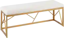 The geometric metal frame on this bench offers exceptional structural stability and durability. Unlike wood, which can expand or contract with humidity, the metal frame is resistant to warping and ensures the piece remains stable and "wobble-free" even with daily use. The gold finish is applied to be both stylish and resilient, making it a hallmark of modern, high-quality accent furniture.