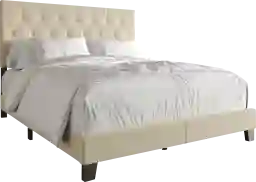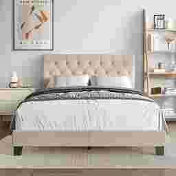 This bed is upholstered in 100% polyester linen fabric, a material chosen for its exceptional durability and resistance to daily wear. Polyester is naturally more resistant to stretching, shrinking, and wrinkling than many natural fibers. This makes it a practical choice for a high-contact area like a headboard, ensuring the beige finish and textured appearance stay pristine over time.