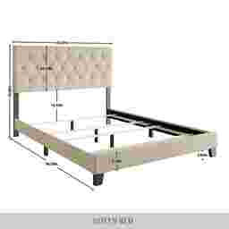 The button-tufted headboard serves both aesthetic and functional purposes. Beyond its sophisticated, modern look, the tufting provides a padded, textured surface that is comfortable to lean against while reading or watching TV in bed. This design feature also adds structural integrity to the upholstery, keeping the padding evenly distributed for long-lasting comfort and support.