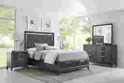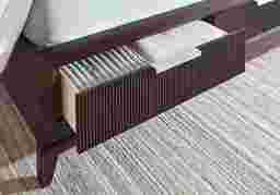 Create a new focal point for your bedroom with the Bellante panel bed with storage. This chic, contemporary bed features durable pine construction with beautiful oak veneers in a brown color that works wonderfully with many different room decor choices. A subtle negative space in the headboard adds depth to the appearance of this bed while reeded detailing adds another bit of complexity to the style of this incredible piece. Two built-in storage drawers in the footboard add to the utility of this bed as a great spot to store bedding, sweaters and more. Mattress and foundation (if required) sold separately.