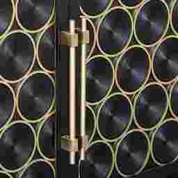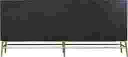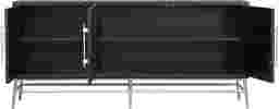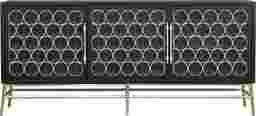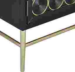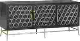 The sophisticated wine-bottle design on the elegant Belle Chasse server will put you in the mood to entertain and your guests in the mood to celebrate. Linked brushed gold rings on the doors evoke wine bottles stored on their sides. That same brushed gold is used on the server's graceful base, as well as on the bar-style door hardware. The golden sparkle contrasts attractively with the server's semi-gloss deep black finish. Inside each of the three doors, you'll find an adjustable shelf, giving you the flexibility to store whatever you like inside, whether that's glassware, serving pieces, linens or other treasures you want tucked away in style. For durability, the console is made of durable hardwood solids and manufactured wood with birch veneer. Customer assembly is required.