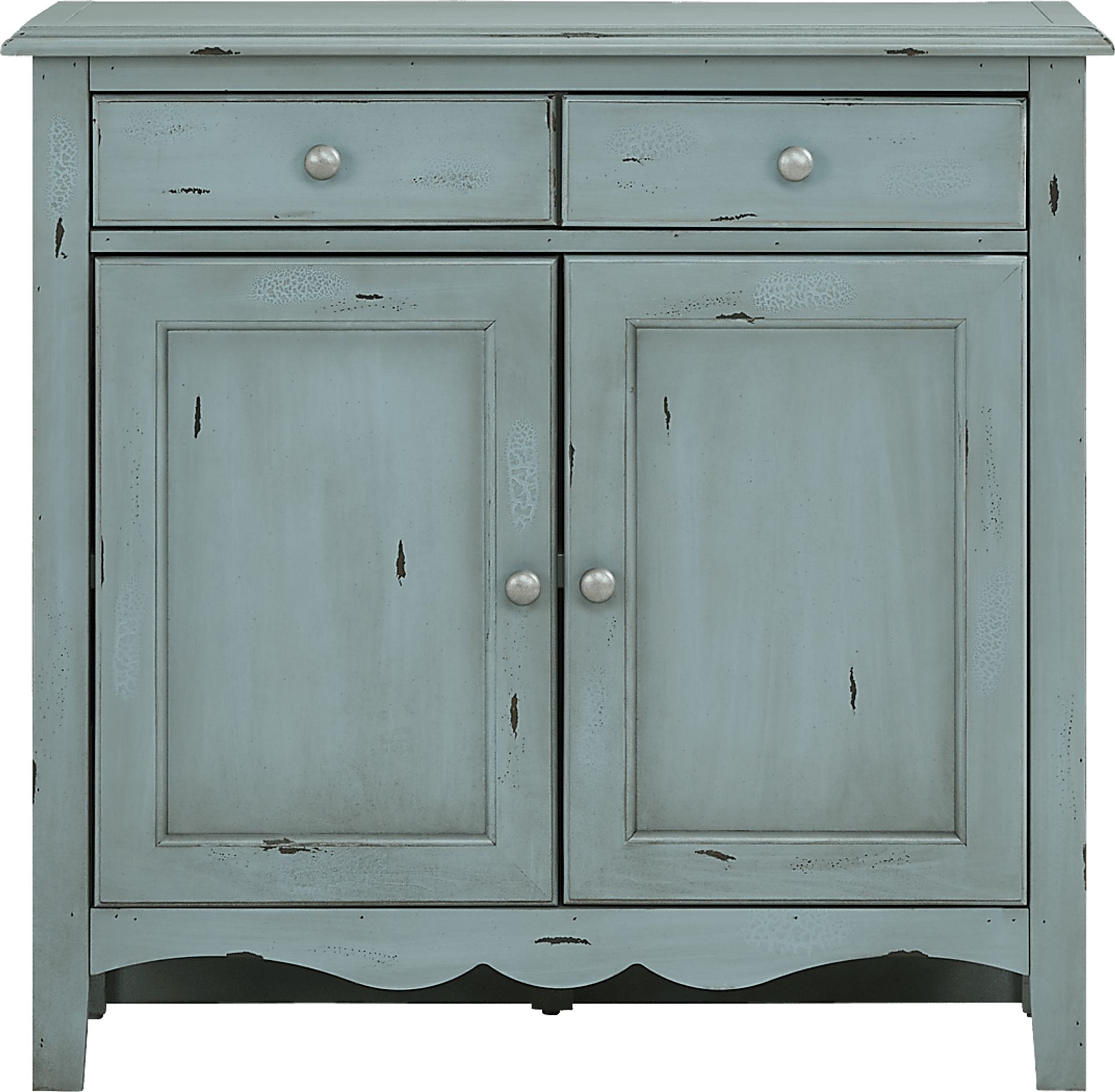 There's a relaxed quality to the details of the Belle De Provence cabinet as it effortlessly ties together a variety of warm French country style notes into one beautiful package. This elegant accent in a blue finish offers the calming grace of a well-loved storage piece with clean lines, a scalloped base and realistic weathering. A shelf inside provides space for blankets, books, and the other comforts of home.