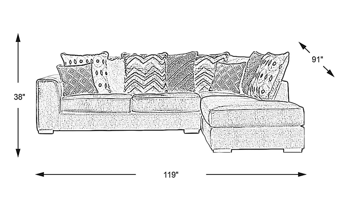 Expressing an artistic design, the Bellehurst sectional reflects a laid-back transitional style. Upholstered in textured plush fabric, its beautiful blue hue creates a calming atmosphere. Elements such as a radius arm and welted seams give this sectional a uniquely tailored look. Varying in size, scatterback pillows offer a mix of bold, playful prints in coordinating colors. Upholstery: 100% Polyester