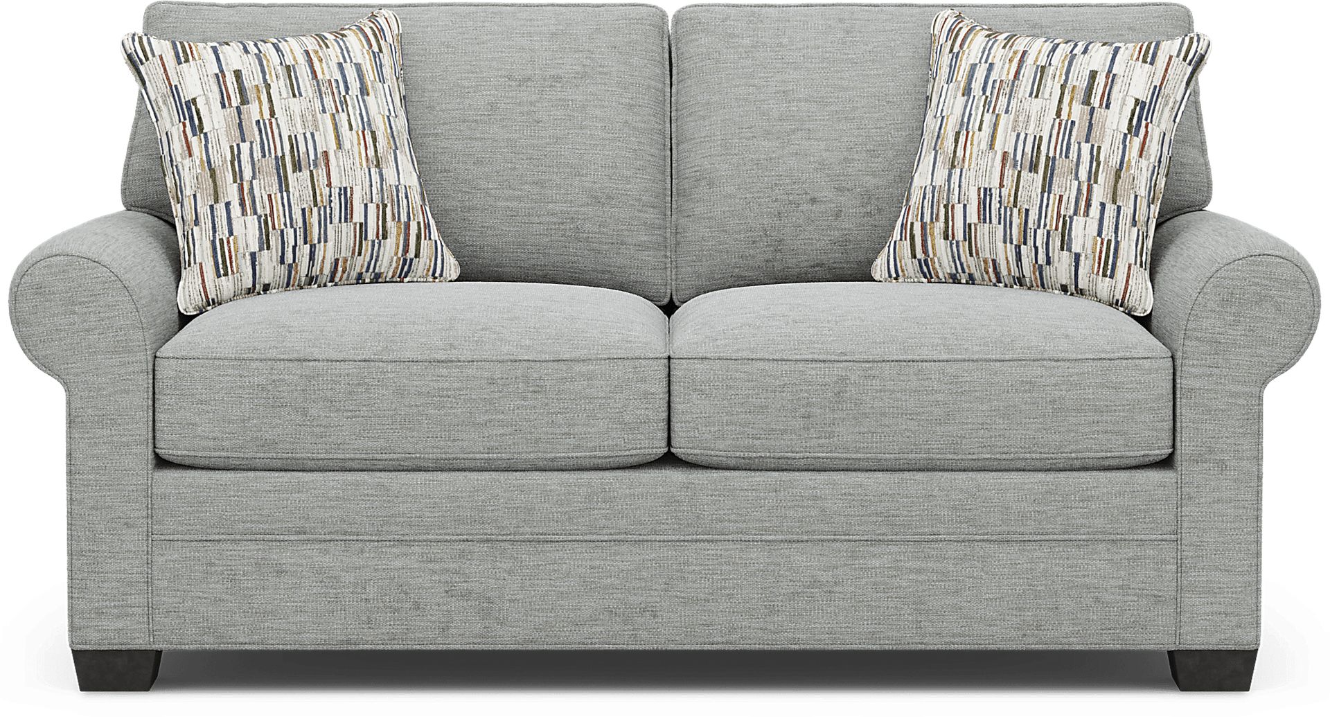 This loveseat features padded rolled arms, which provide a soft resting place for your arms or head while lounging. The seating experience is further enhanced by the double-welted boxed cushions, which offer a structured yet plush feel. This double-welted construction is not only an aesthetic choice for a casual look but also reinforces the seams for improved structural integrity during daily use.