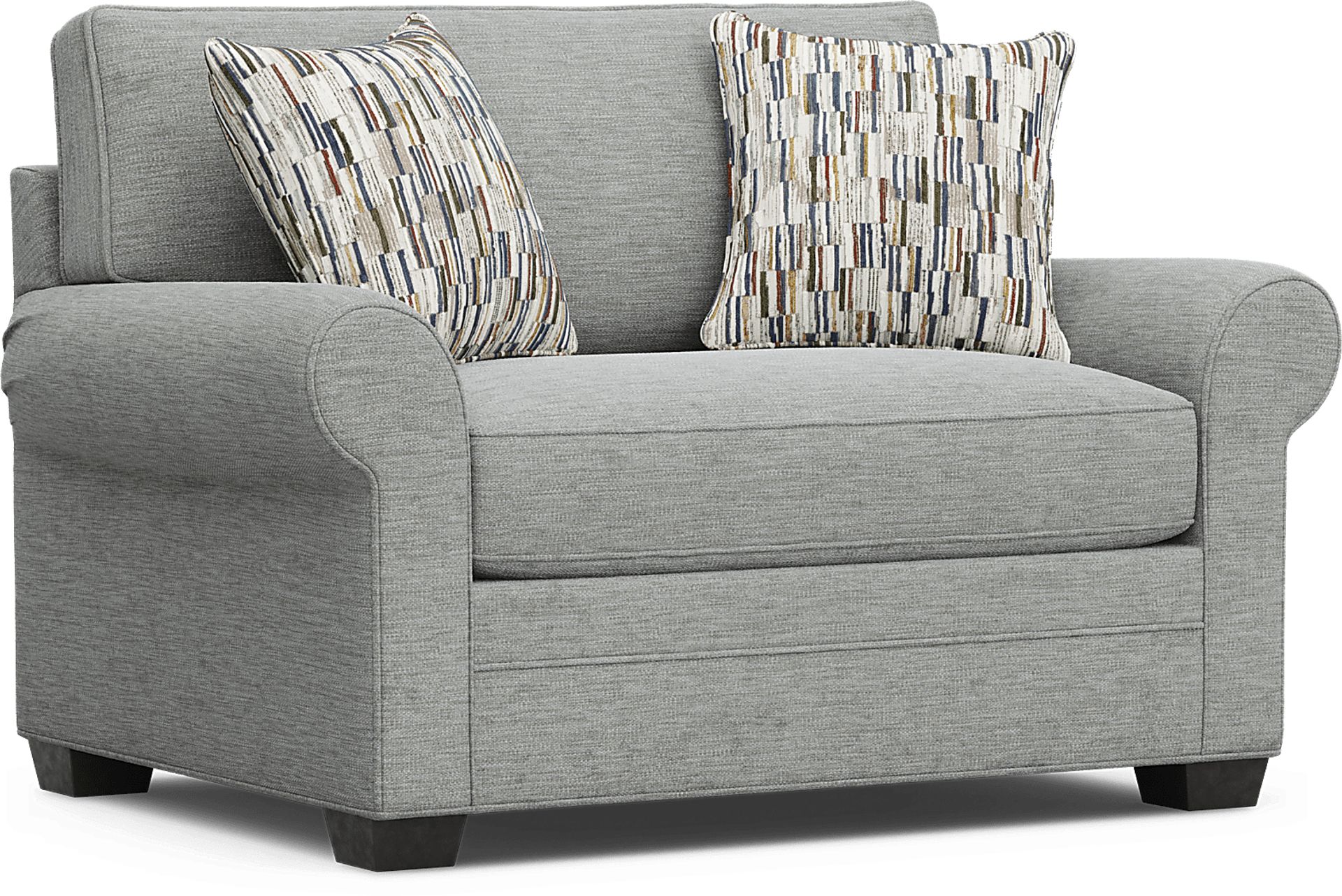 Timeless seating is here with the Bellingham sleeper chair from Cindy Crawford Home. Upholstered with textured chenille in an irresistible shade of arctic, this piece features reversible back and seat cushions with double-welted boxed borders. A twin Sealy Royale mattress can be pulled out to create a comfortable guest suite for overnight company. Accent pillows and padded rolled arms add perfect final touches. Upholstery: 90% Polyester 10% Viscose