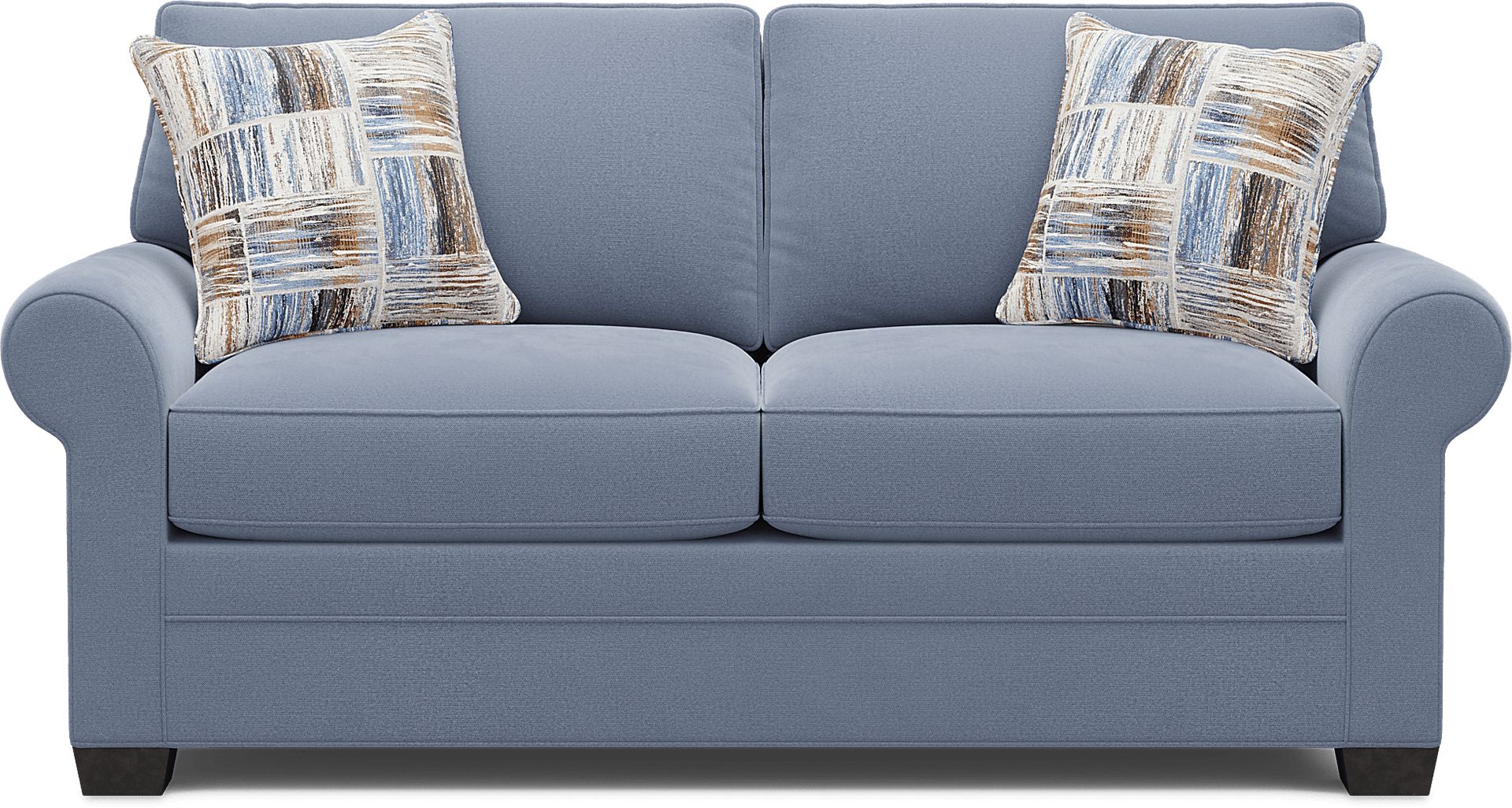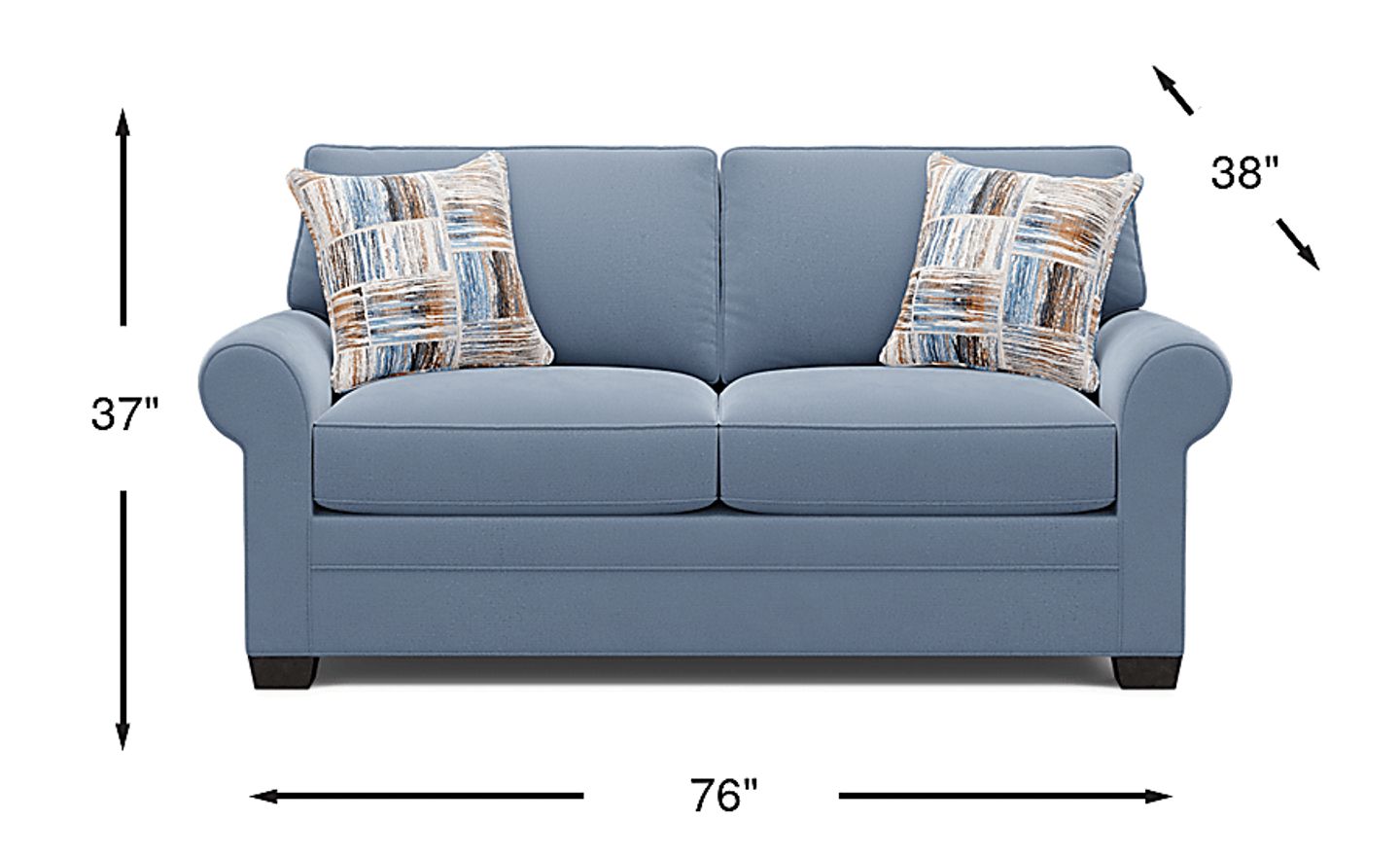 Timeless seating is here with the Bellingham sleeper loveseat from Cindy Crawford Home. Upholstered with soft, herringbone embossed microfiber fabric in an irresistible shade of blue, this piece features reversible back and seat cushions with double-welted boxed borders. A full Sealy Royale mattress can be pulled out to create a comfortable guest suite for overnight company. Matching accent pillows and padded rolled arms add perfect final touches. 100% Polyester