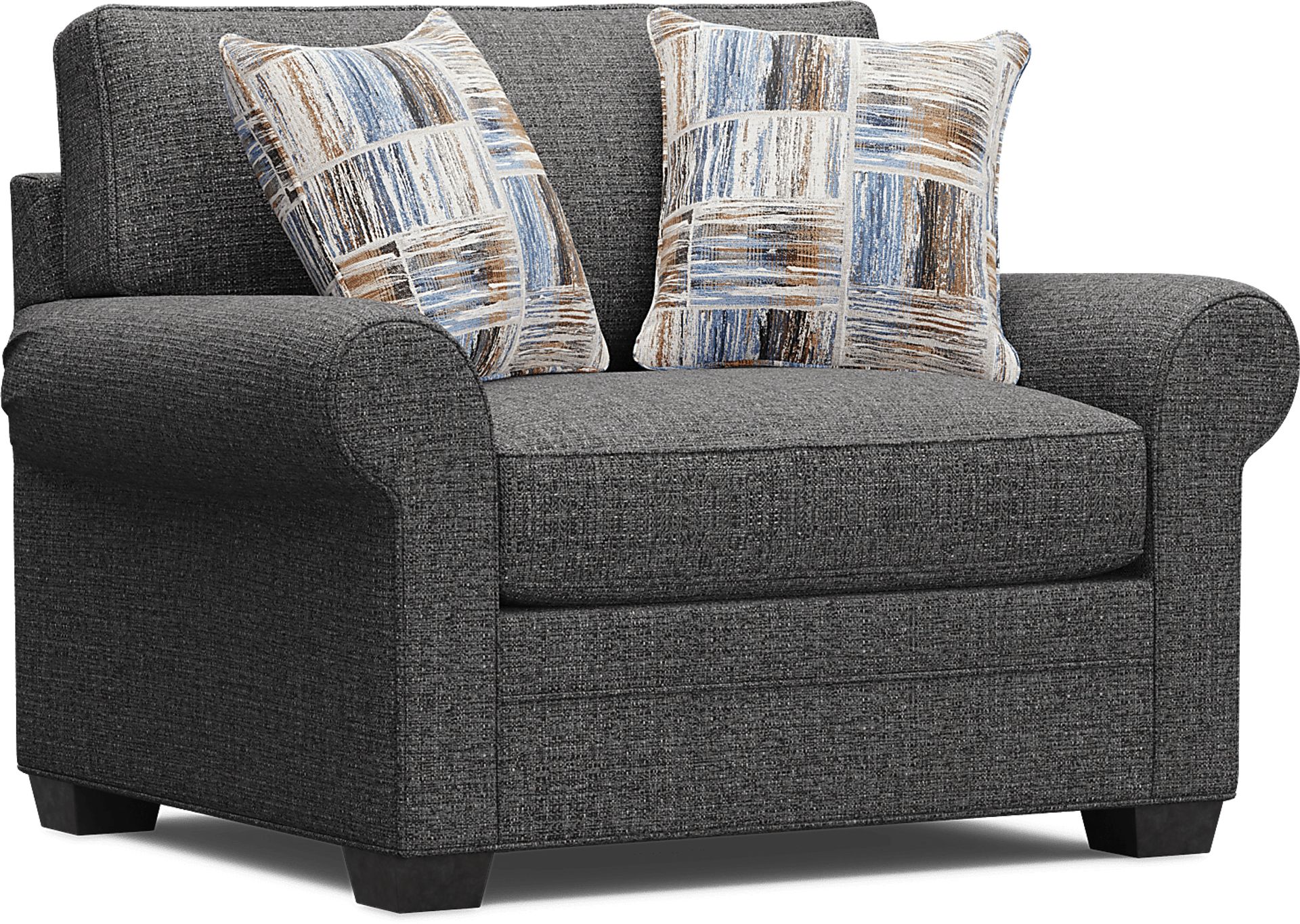 Timeless family-style seating is here with the Bellingham sleeper chair from Cindy Crawford Home. Upholstered with textured woven fabric in an irresistible dark granite color, the chair features reversible back and seat cushions with double-welted boxed borders. Nestled away for overnight company, the twin Nature's Bed gel foam mattress with outstanding body contouring support provides a cool and comfortable place for rest. Matching accent pillows and padded rolled arms add perfect final touches. 100% Polypropylene