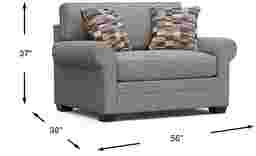 Timeless family-style seating is here with the Bellingham collection from Cindy Crawford Home. Upholstered with textured chenille in an irresistible shade of stone gray, this chair features soft curves and padded roll arms for a graceful silhouette. Reversible back and seat cushions with double-welted boxed borders add refined tailoring. Beneath is a Nature's Bed gel foam sleeper mattress that easily transforms your living room into a cool and comfortable sleep space for overnight guests. A pair of toss pillows showcase a patchwork-inspired design in earthy shades of blue, purple, green and brown to create a warming accent, while fringed textured details bring tactile interest and dimension. Upholstery: 90% Polyester,10% Viscose