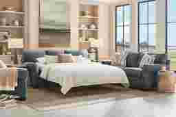 Includes:pebble sofa • pebble loveseat • Cocktail Table + 2 End Tables • beige lamp (2)