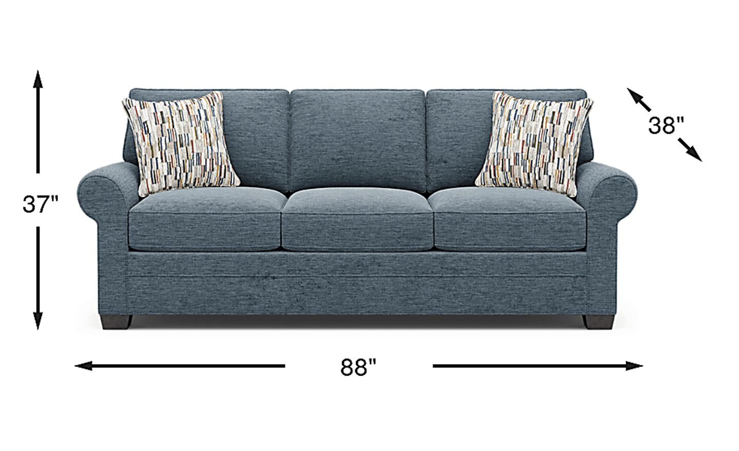 With a width of 88 inches and a depth of 38 inches, this 3-seater sofa offers a substantial seating area while maintaining a footprint that fits well in most average-sized rooms or home offices. Because it houses an XL queen mattress, we recommend ensuring you have approximately 90 inches of clearance from the back of the sofa to the foot of the bed when it is fully extended for a comfortable walking path.