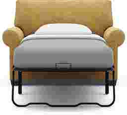 This chair is equipped with a Sealy Royale sleeper mattress. We chose this specific mattress because it provides the authoritative support and comfort guests expect from the Sealy brand while maintaining a profile thin enough to fold seamlessly into the chair’s frame without compromising the sitting experience.