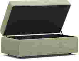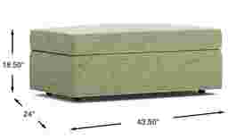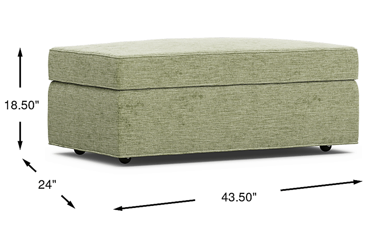 Timeless family-style seating is here with the Bellingham collection from Cindy Crawford Home. Upholstered with textured chenille in an irresistible shade of moss green, this storage ottoman pairs a rectangular shape with soft curves for a graceful silhouette. The top effortlessly lifts to reveal ample storage space for blankets, toss pillows and other living room essentials. Upholstery: 90% Polyester,10% Viscose