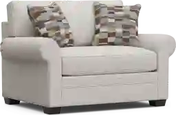 Includes:pebble sleeper sofa • pebble sleeper chair • brown 2 pc table set