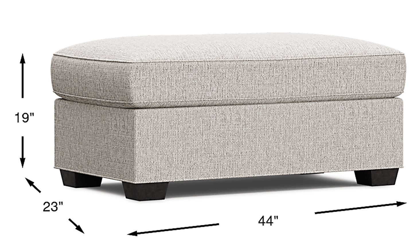 Measuring 44 inches wide and 23 inches deep, this ottoman follows the "two-thirds rule" of interior design, making it a proportional match for most standard sofas (typically 75–90 inches long). Its 19-inch height is engineered to be equal to or slightly lower than standard seat cushions, ensuring maximum ergonomic comfort when used as a footrest.