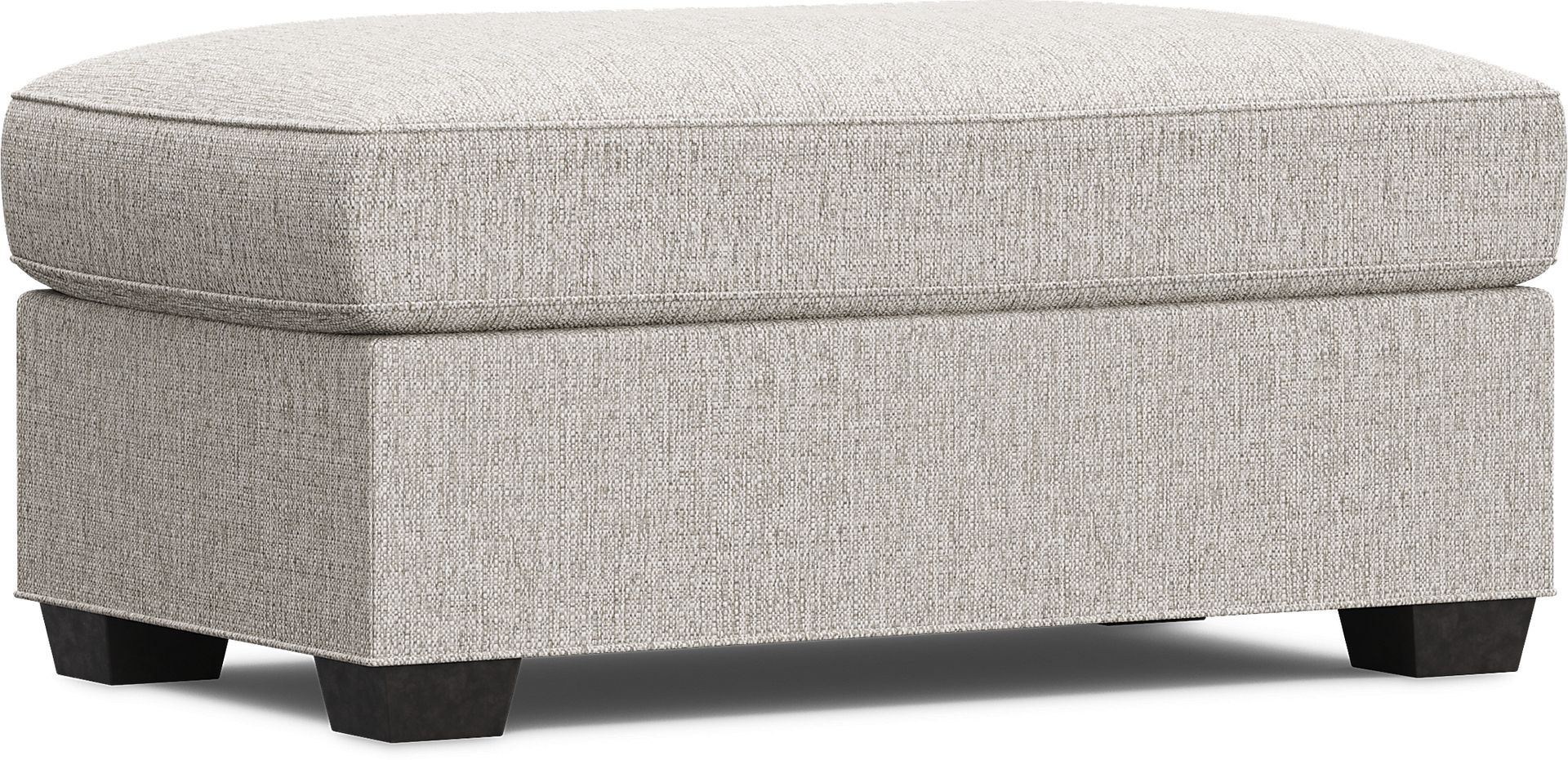 Whether as a footrest or extra seat, the Bellingham ottoman from Cindy Crawford Home is sure to be a welcome addition to your living room. This piece is upholstered with textured woven fabric in an irresistible light pebble color and supported by wood block legs. Upholstery: 100% Polyester.