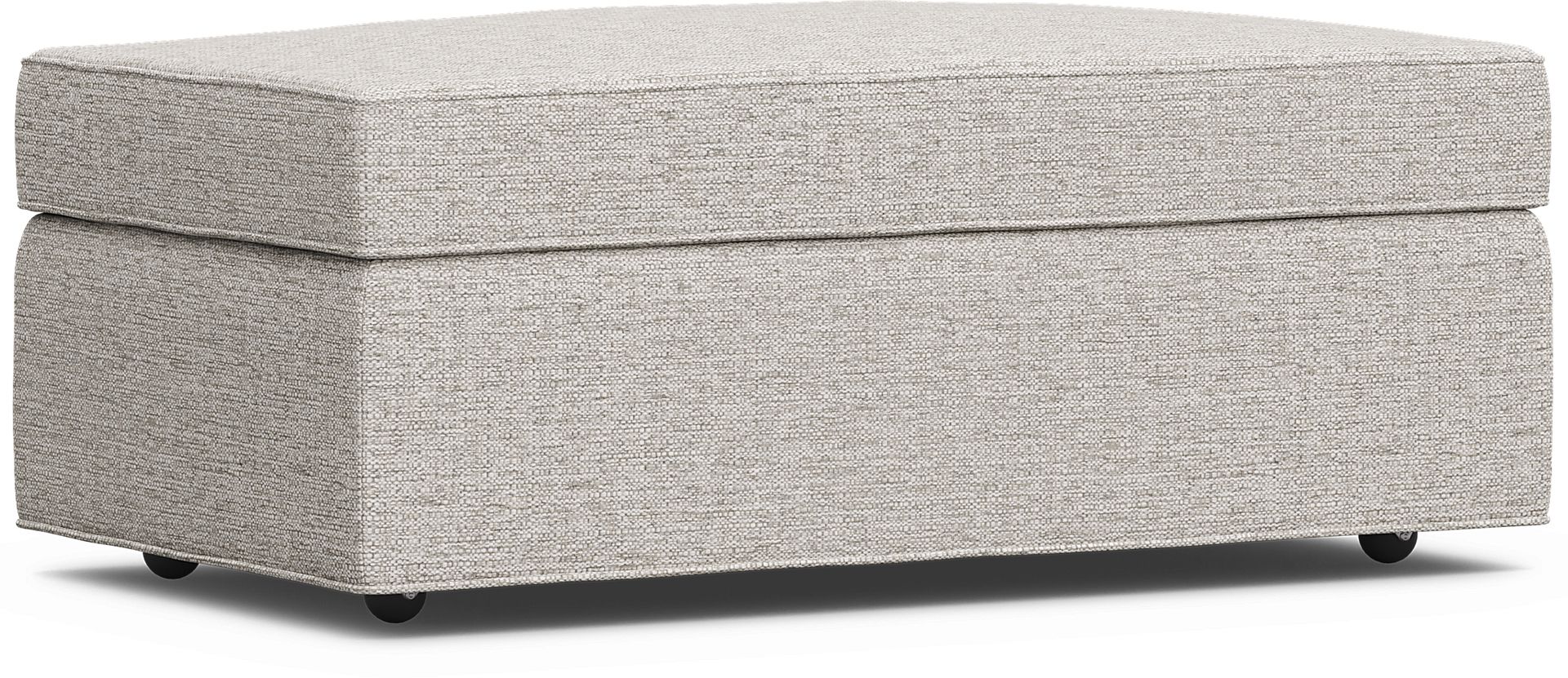 Whether as a footrest or extra seat, the Bellingham ottoman from Cindy Crawford Home is sure to be a welcome addition to your living room. This piece is upholstered with textured woven fabric in an irresistible light pebble color and supported by wood block legs. Upholstery: 100% Polyester.