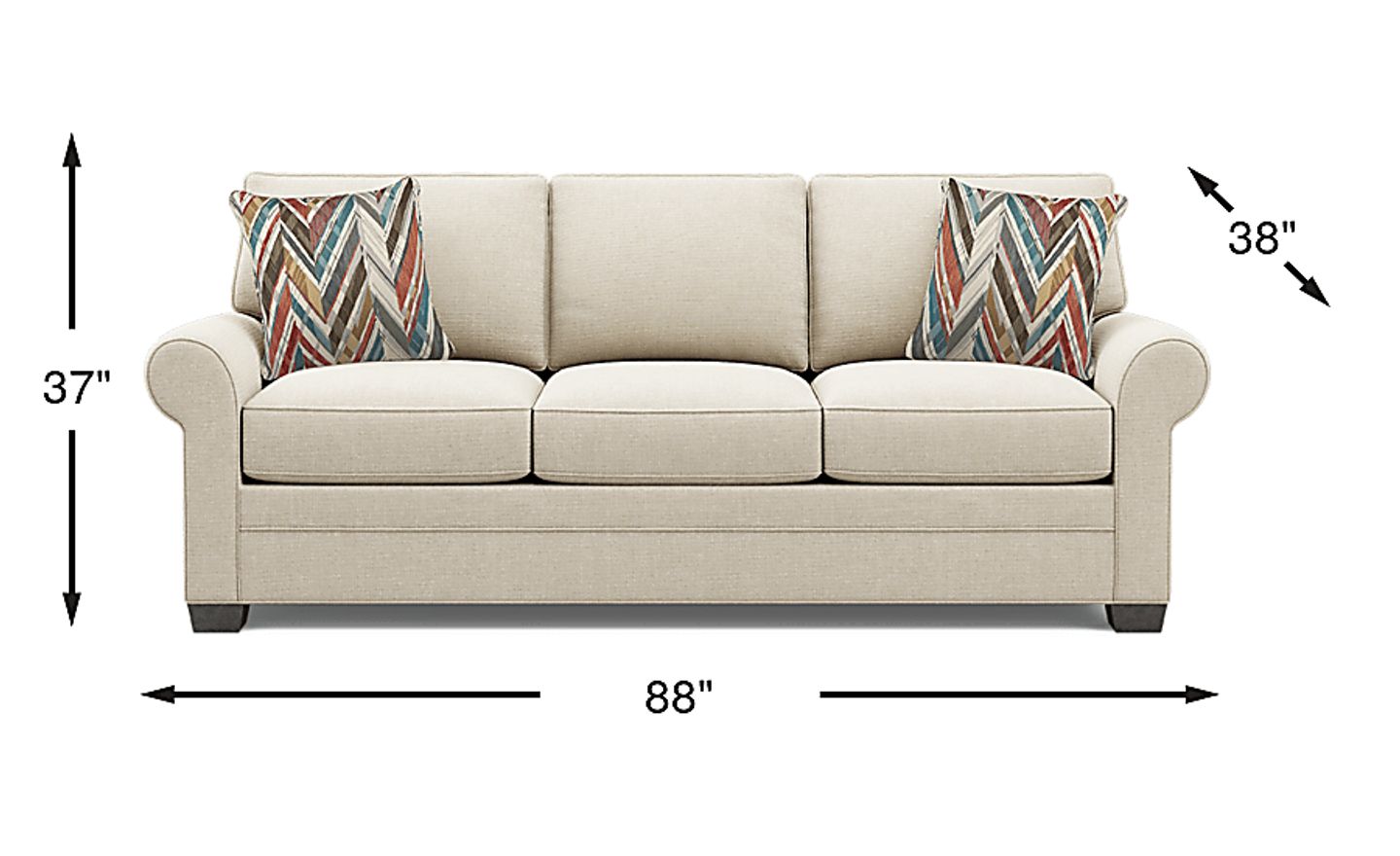 Timeless seating is here with the Bellingham sofa from Cindy Crawford Home. Upholstered with textured woven fabric in an irresistible shade of sandy beige, this piece features reversible back and seat cushions with double-welted boxed borders. Coordinating accent pillows and padded rolled arms add perfect final touches. Upholstery: 100% Polypropylene.