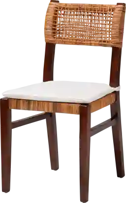 Bring the flair of paradise to every meal with the Belliy brown dining chair. This bohemian piece consists of a sturdy wood frame embellished with handwoven natural rattan. Its open backrest lends a supportive embrace, while the lattice weave of the rattan enables light to flow naturally throughout the room. The Belliy is fitted with a removable cushion padded with plush foam and upholstered in sumptuous fabric. Tapered legs complete the look, making the Belliy a graceful addition to any layout. Rattan is a product of nature and may have variations in areas such as, but not limited to, color, pattern, grain and texture. The hair-like strands of rattan/rattan-fiber are common due to the nature of the material.