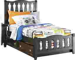 The Belmar sleigh bed is a dashing retreat for your darling. Actually, it's one cool bed that features crisp lines complemented by geometric, openwork designs on the head- and footboard. For longevity and durability, it is comprised of wood solids and veneers, making it age appropriate for years to come. Coupled with the classic black finish, this bed offers timeless appeal and creates a stylish place sleep. Underbed storage trundle included. Mattress and foundation (if required) sold separately.