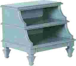 Charmingly designed to brighten up any space, the Belmar step nightstand makes an excellent bedside companion. Constructed of hardwood solids and veneers with a bold blue painted finish, slightly scalloped sides create an attractive and eye-pleasing profile. Two open shelves and a lower drawer make storing pictures, magazines, books, and any number of things not only simple, but perfectly within reach.