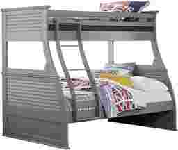 The space saving Belmar bunk bed is a great choice for siblings or sleepovers. The twin bed on top can be reached by a sturdy built-in ladder. Below is a full sized bed. Quality crafted of durable hardwood solids and veneers with a trendy gray finish, the bunk's sides are detailed with shuttered panels. Mattresses and foundations (if required) sold separately. Bunkies required for mattress support.