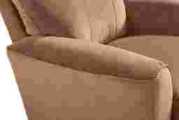 From movie night to game day, everyday enjoyment and relaxation become the go-to lifestyle with the Belmont I recliner's plush support and soft curves. Transitional in style, this piece is upholstered in a warm camel brown fabric that enriches the room with cozy texture and color. A tailored silhouette is shaped by gently flared arms and a generously padded back with subtle tufting. A lever finished in warm brown allows you to recline effortlessly while you relax. Upholstery: 90% Polyester, 7% Rayon