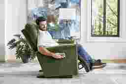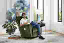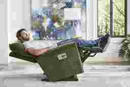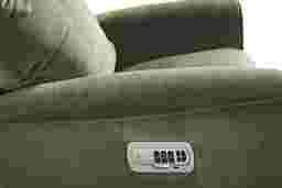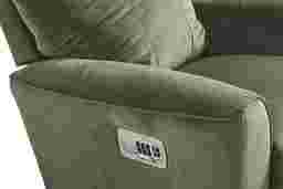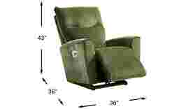 From movie night to game day, everyday enjoyment and relaxation become the go-to lifestyle with the Belmont III recliner's plush support and soft curves. Transitional in style, this piece is upholstered in a cypress green fabric that enriches the room with cozy texture and color. A tailored silhouette is shaped by gently flared arms and a generously padded back with subtle tufting. Dual power reclining offers fully adjustable headrest and footrest at the touch of a button, while integrated USB ports on the control panel keep your devices charged and close by. Upholstery: 90% Polyester, 7% Rayon