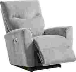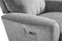From movie night to game day, everyday enjoyment and relaxation become the go-to lifestyle with the Belmont III recliner's plush support and soft curves. Transitional in style, this piece is upholstered in a cool slate blue fabric that enriches the room with cozy texture and color. A tailored silhouette is shaped by gently flared arms and a generously padded back with subtle tufting. Dual power reclining offers fully adjustable headrest and footrest at the touch of a button, while integrated USB ports on the control panel keep your devices charged and close by. Upholstery: 90% Polyester, 7% Rayon