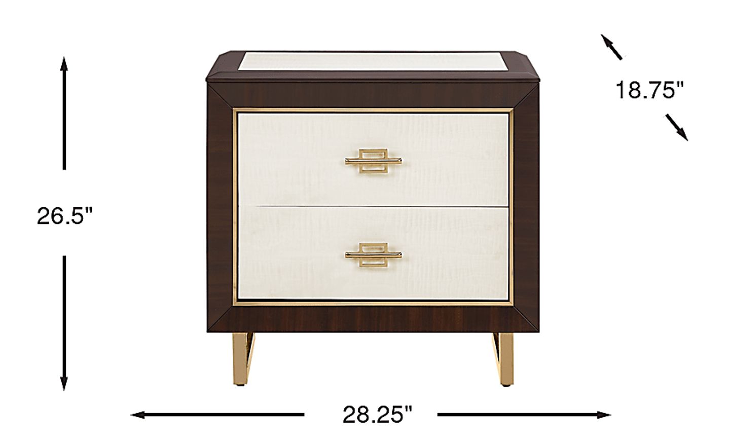 This furniture is engineered for lasting reliability, featuring two spacious drawers equipped with side-mounted, full-extension ball-bearing glides. This high-quality construction ensures effortless motion and allows you to access the entire drawer space easily. The brushed gold hardware provides a durable, elegant touch that is built to withstand frequent daily use.