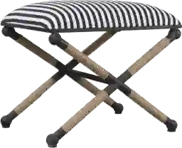 This bench is a versatile "transitional" piece. The combination of the rustic iron frame and natural fiber rope accents allows it to blend seamlessly into coastal or "nautical-chic" themes. Meanwhile, the clean lines of the X-leg frame and the crisp navy-and-cream stripes provide a structured look that complements modern and contemporary farmhouse interiors.