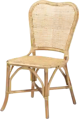 Dine within an aura of casual bliss with the chic, boho vibes emanating from the Belshaw brown dining chair. This bohemian style piece is entirely comprised of natural rattan. Its tapered backrest creates a distinct silhouette while woven rattan embellishments offer a smooth embrace. The Belshaw utilizes angled legs connected by a crisscross base for excellent stability and support. Encapsulating the allure of exotic craftsmanship, the Belshaw dining chair uplifts any occasion. Due to the nature of the natural materials used in this product, it may have variations in areas such as, but not limited to, color, pattern, grain and texture. The hair-like strands of rattan/rattan-fiber are common due to the nature of the material.