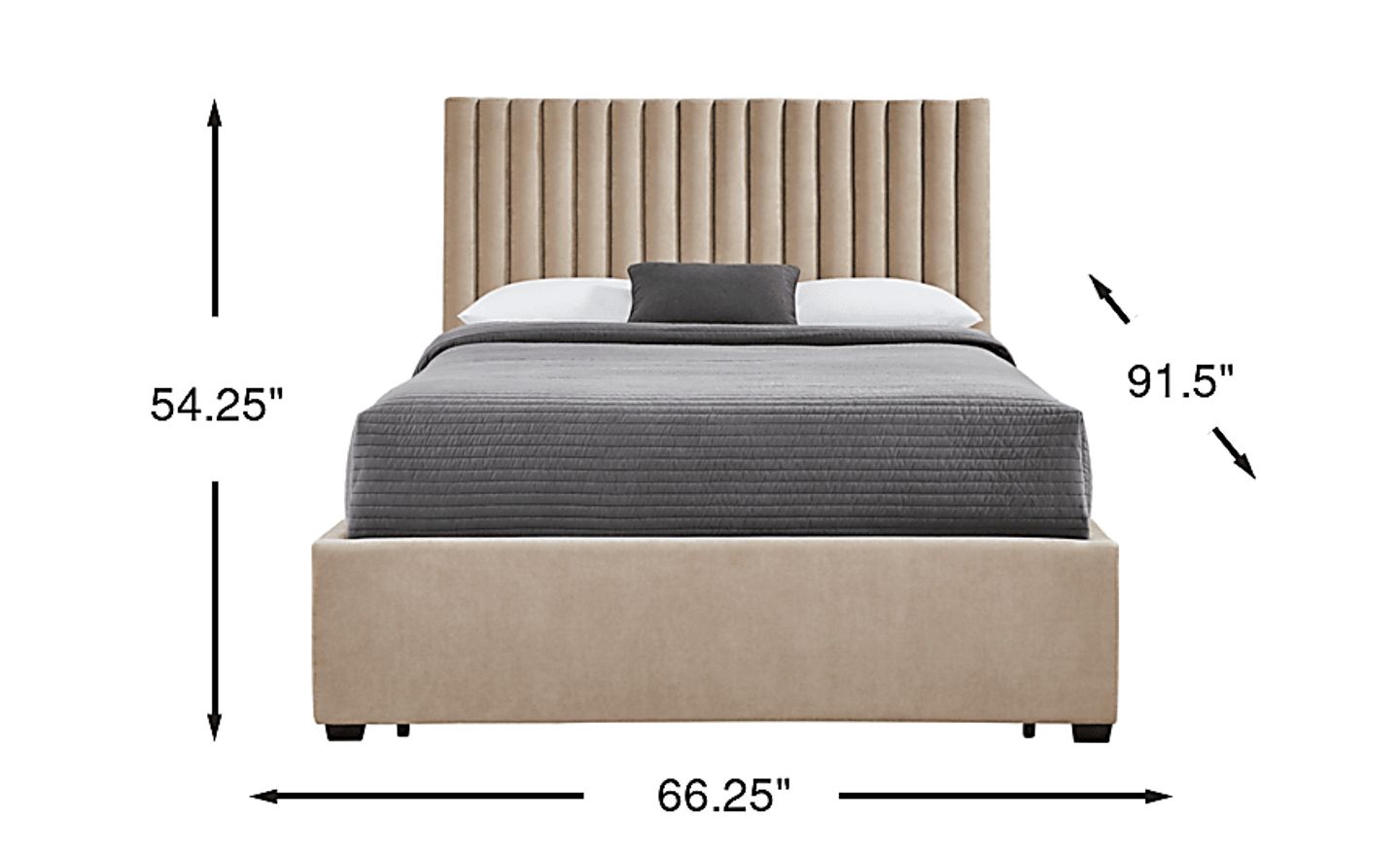 The lavish style and bold presence of the Belvedere bed sets up your sleep space as a cozy refuge unlike any other. The tall headboard features a row of reeded details that catch the light in soft beige. In contrast, the simple footboard and sturdy block legs of the bed accentuate the look without stealing the show. Hidden away inside the footboard and sides are three drawers with space for extra linens and pillows. Upholstery: 100% polyester.