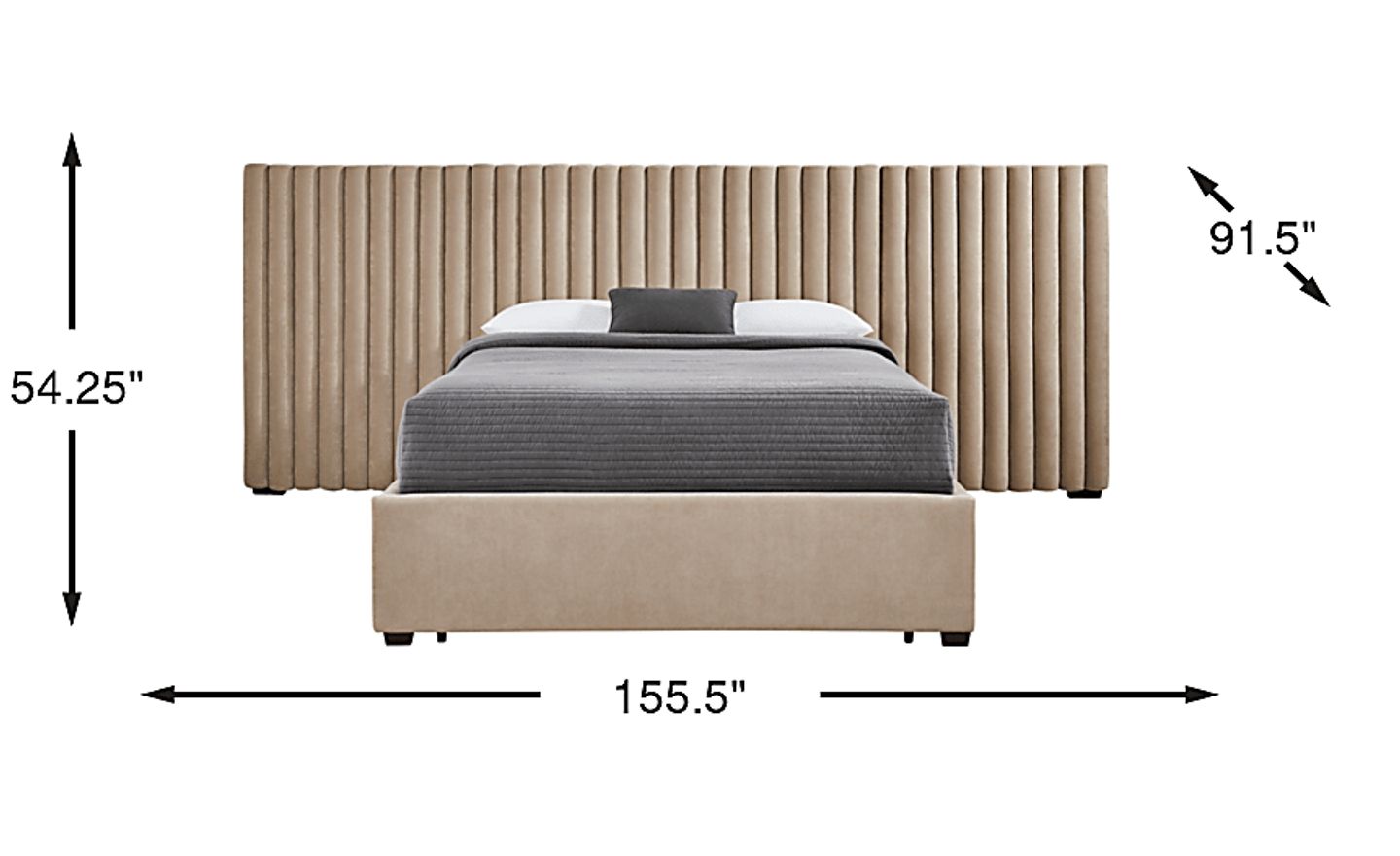 This bed is a significant architectural statement with an expansive total width of 155.5 inches—nearly 13 feet wide. While it accommodates a standard king mattress, the wall-panel headboard is designed to create a dramatic, "built-in" look that spans a large portion of your wall. We highly recommend measuring your primary wall space carefully, as this design is best suited for spacious master suites rather than compact urban bedrooms.