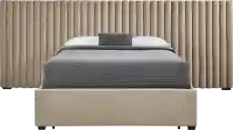 Because of the unique 4-piece construction and the substantial scale of the wall-panel headboard, professional assembly is highly encouraged. Ensuring that the expansive wing panels are perfectly aligned and securely attached to the main frame is critical for both the safety of the unit and the clean, architectural look intended by the design.