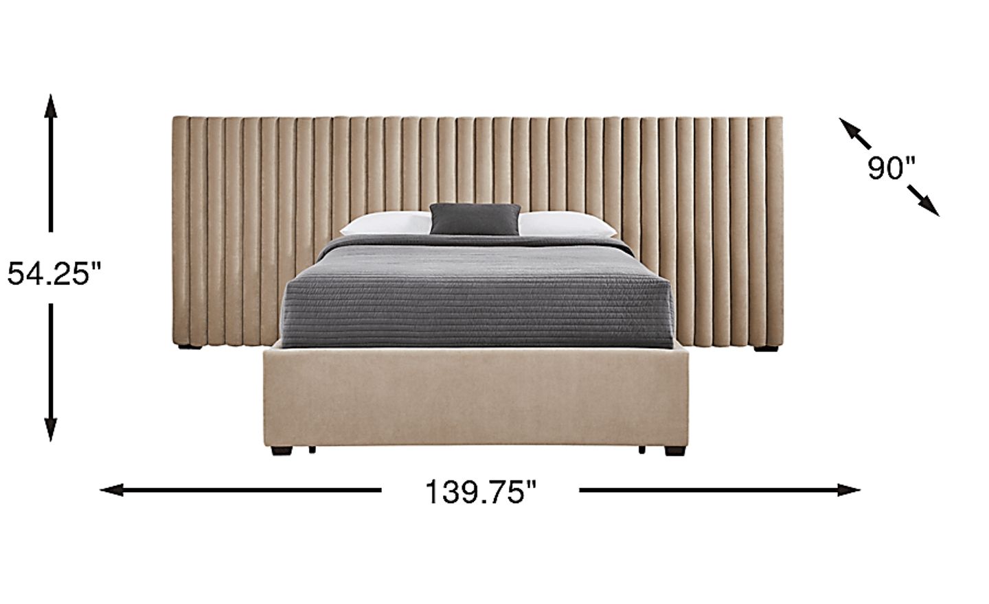 This bed has a significant width of approximately 140 inches (nearly 11.6 feet) due to the two wing panels that extend the headboard. This "wall bed" design is intended to create a grand, built-in aesthetic. Before delivery, ensure your wall space can accommodate this width and that entryways are clear; our delivery team will handle the heavy lifting, but verifying the scale of your space is key for such a bold, large-scale piece.