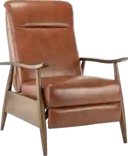 A clean classic recliner is what you get with the Benbro wood arm push back chair. Featuring chestnut brown wood arms with tapered legs this comfortable recliner adds a modern look to any room. Customer assembly is required.