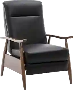 A clean classic recliner in top-grain leather is what you get with the Benbro II wood arm push back chair. Featuring chestnut brown wood arms with tapered legs this comfortable recliner adds a modern look to any room. The top grain leather is aniline-dyed and contributes to the outstanding comfort of this recliner. Customer assembly is required.