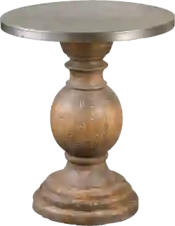 Naturally weathered, reclaimed fir wood pedestal accented by an aluminum sheeting-clad table top complete the Bendye accent table. Solid wood will continue to move with temperature and humidity changes, which can result in small cracks and uneven surfaces, adding to its authenticity and character. Customer assembly is required.