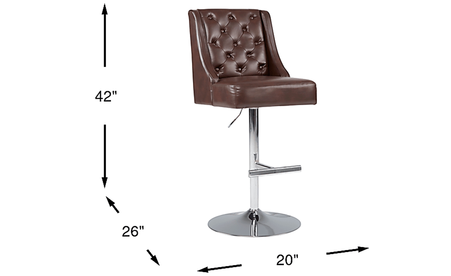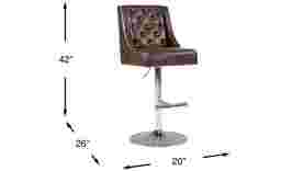 The classic, contemporary styling of the Benji barstool gives your kitchen or dining area a sophisticated look. Covered with smooth fabric in chocolate brown, the seat displays elegant button-tufting detail. Its steel chrome-finished base features swivel movement and adjustable height using a gas-lift mechanism activated by the lever. This barstool's sleek, armless design includes a convenient foot pedestal to help you sit and stand with ease. 82% Polyester, 18% Polyurethane