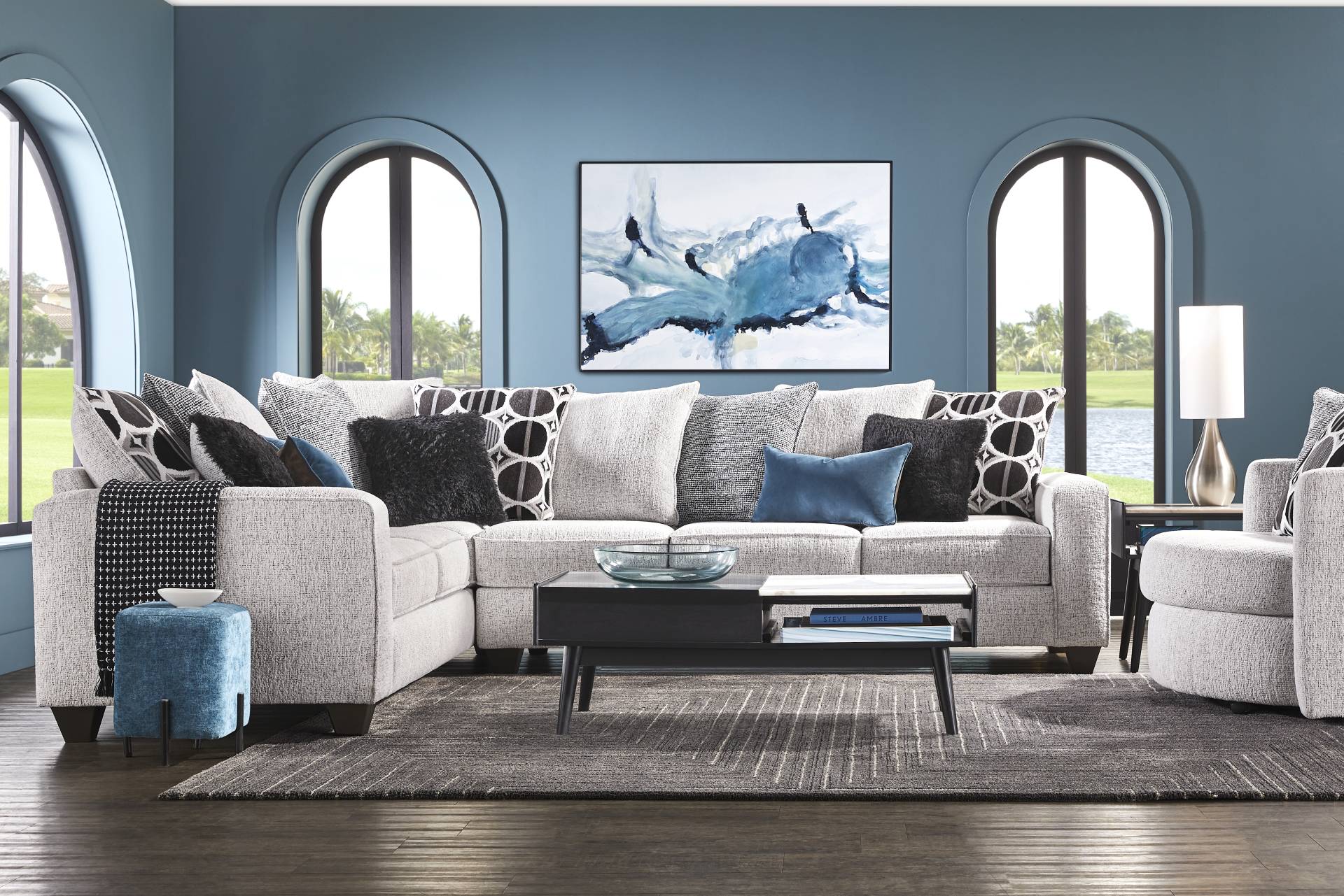 Mixing casual vibes with satisfying comfort, the Benton Place sectional is a relaxing charmer that invites you to unwind in style. Decorative top-stitched seams, stunning track arms and loose seat cushions bring the cool, contemporary style of this collection to life. Featuring a pair of sofas that are upholstered with woven fabric, one sofa reveals a sumptuously comfy Nature's Bed queen-sized gel memory foam mattress that turns any room into a bedroom in a flash. Offset against the soothing tone of the gray upholstery, accent pillows embolden the sectional with a rich final touch. Upholstery: 100% Polyester.