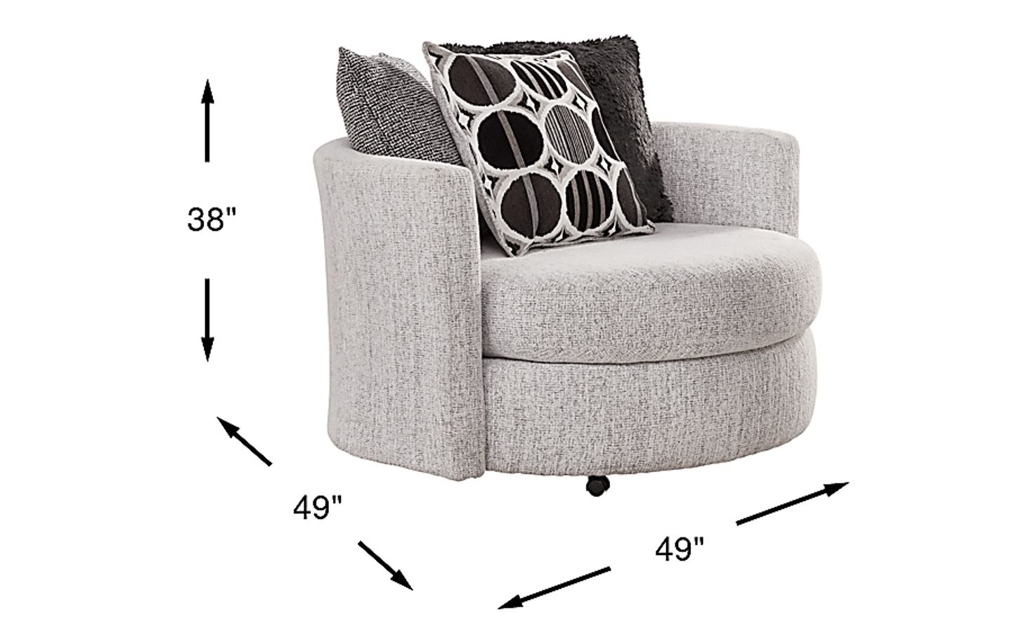 With a substantial footprint of 49"W x 49"D, this chair is designed as a "chair and a half" or cuddle chair. To ensure the 360-degree swivel mechanism functions without obstruction, we recommend placing it in a layout that allows at least 12–15 inches of clearance from walls or other furniture. This ensures the track arms and deep frame can rotate smoothly, making it an ideal focal point for open-concept living rooms or master bedroom seating nooks.
