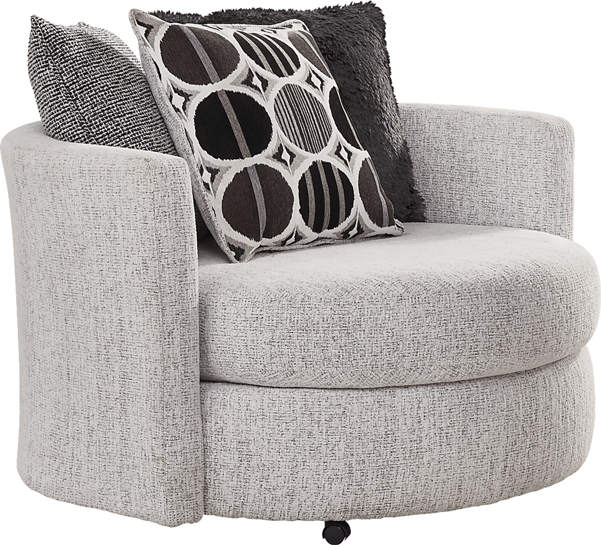 Mixing casual vibes with satisfying comfort, the Benton Place swivel chair is a relaxing charmer that invites you to unwind in style. Upholstered with woven gray fabric, this piece features decorative top-stitched seams, a stunning track arm and a loose seat cushion. An accent pillow emboldens the piece with a contemporary final touch. Upholstery: 100% Polyester.