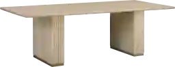 This table requires customer assembly. Due to the substantial weight and 96-inch scale of the natural ash top and the double pedestal base, we strongly recommend having two people available for the assembly process. This ensures the structural components are aligned correctly and the table is safely uprighted once the base is secured.