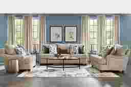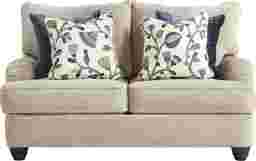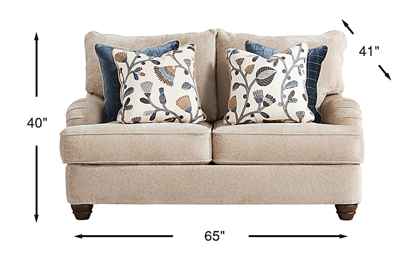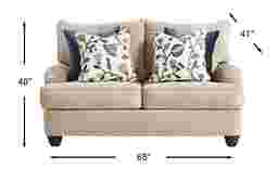 With the quiet familiarity of a well-loved heirloom, the Berkeley Heights collection is gracefully composed and unapologetically timeless. Transitional in style, this loveseat is upholstered in beige chenille and showcases plush cushions with gentle curves for a cozy, sink-in feel. Round track arms and welted seams highlight its refined silhouette, while turned wooden legs add a classic touch. A mix of accent pillows with floral embroidery, textured finishes, and a rich palette add depth, warmth, and personality to the overall look. Upholstery: 100% Polyester.