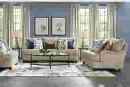 With the quiet familiarity of a well-loved heirloom, the Berkeley Heights collection is gracefully composed and unapologetically timeless. Transitional in style, this sofa is upholstered in beige chenille and showcases plush cushions with gentle curves for a cozy, sink-in feel. Round track arms and welted seams highlight its refined silhouette, while turned wooden legs add a classic touch. A mix of accent pillows with floral embroidery, textured finishes, and a rich palette add depth, warmth, and personality to the overall look. Upholstery: 100% Polyester.